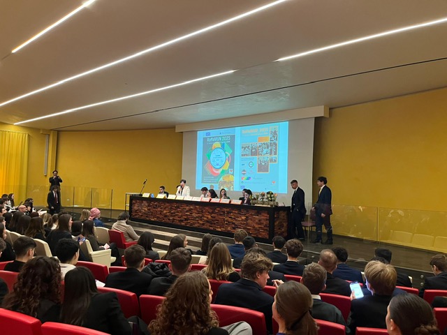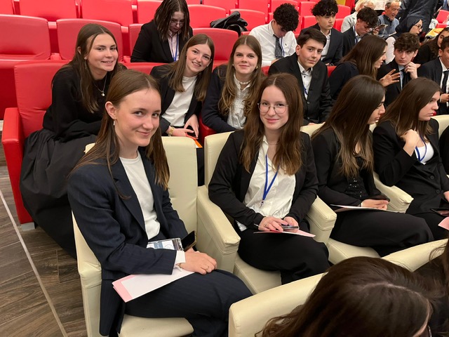 We hebben vandaag een geweldige dag gehad! In de lokalen van het Liceo rondden we eerst onze debatten af van de RaffaMun. Tijdens deze sessie werden de finale resolution papers geschreven die dan vervolgens in de aula van het ziekenhuis werden voorgesteld in een officiële setting. Ouders, leraren en leerlingen luisterden aandachtig naar onze conclusies. De resoluties werden per land gestemd en allen goedgekeurd. Om de ceremonie af te sluiten, kregen de beste sprekers van elk comité een speciale vermelding en drie van onze leerlingen vielen hier in de prijzen: Giorgia, Kobe en Victor. Het hele gebeuren werd vervolgens afgesloten met speeches van de counselor van Milaan, de betrokken leerkrachten en uiteraard de directeur van het Liceo. Romina werd in de bloemetjes gezet en dat werd het startsein van een klein feestje. DJ Giovanni bracht iedereen meteen in de sfeer. De RaffaMun was een fantastische ervaring en we zijn blij dat we de kans kregen hier aan deel te nemen.